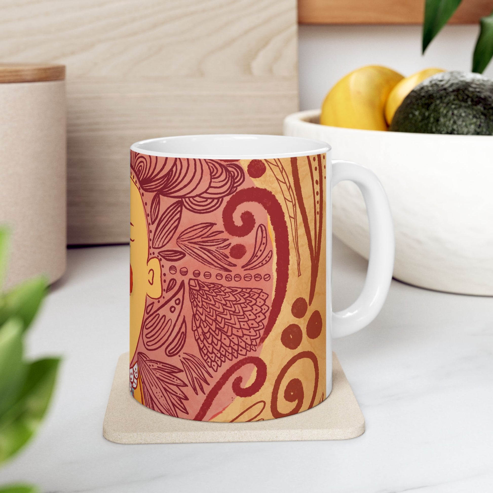 Brighten your mornings with this charming ceramic mug! With its colorful and unique design, this mug adds a dash of personality to your daily coffee routine or tea time. Perfect for art lovers and those who appreciate expressive and artistic designs, this mug is a delightful gift for birthdays, housewarming celebrations, or just to treat yourself. Enjoy your favorite beverages in style, whether at home, in the office, or during a cozy gathering. Its vibrant colors and glossy finish ensure it stands out, making every sip a joy.